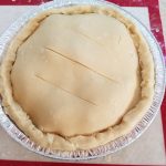 - Leaving a bit of the edge to fold in and seal the pie, cut off the leftovers all around the pan.